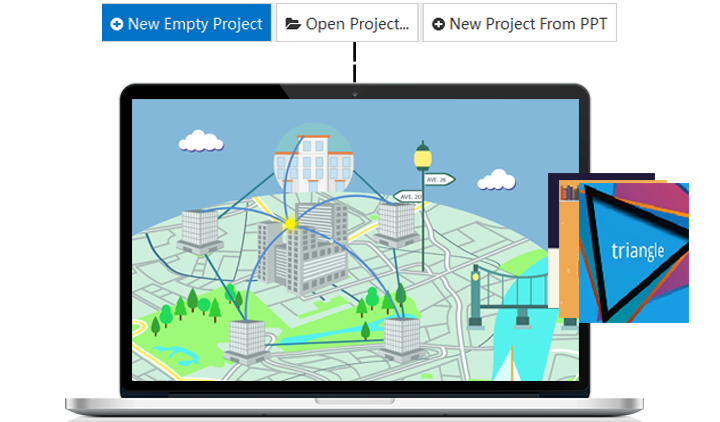 Animiz animated video creator provides everyone with opportunity to create their own stylish videos for free. You don't have to ask for any design company or pay for anyone for your video creation. You can be a designer. In the Animiz, there are many options given to start your work: New Empty Project, Open Project (Open the project created before), New Project Form PPT and Online Template. No code and no design experiences request, you can quickly create your own animated videos.