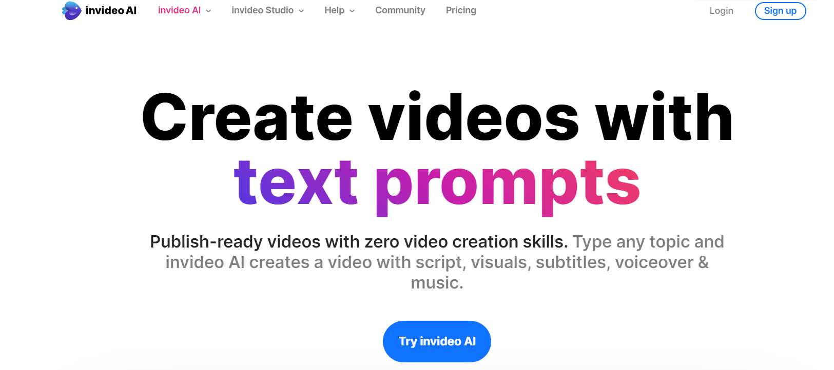 This is another great AI video market alternative. InvideoAI promises users informative and unique content. You don’t need to learn anything else as the tool will provide you with an easy way of video creation through text prompts.